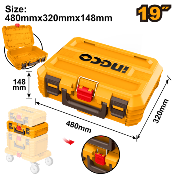 CAIXA DE FERRAMENTAS PVC EMPILHAVEL 19″ 48X32X14.8CM INGCO PBXS102