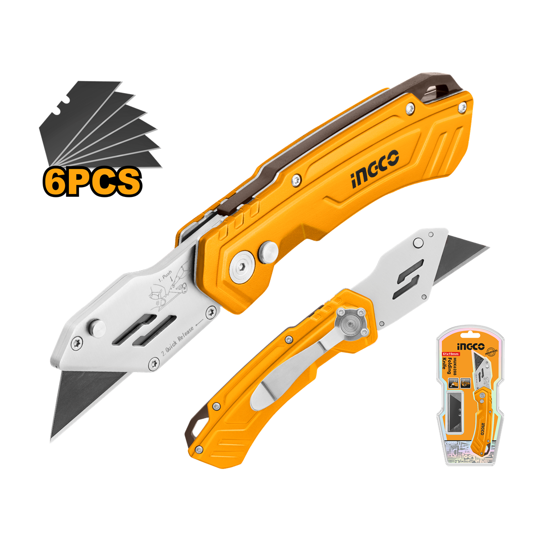 ESTILETE TRAPEZOIDAL DOBRÁVEL EM AÇO INOX LAMINA 61MMX19MM INGCO HUK6288