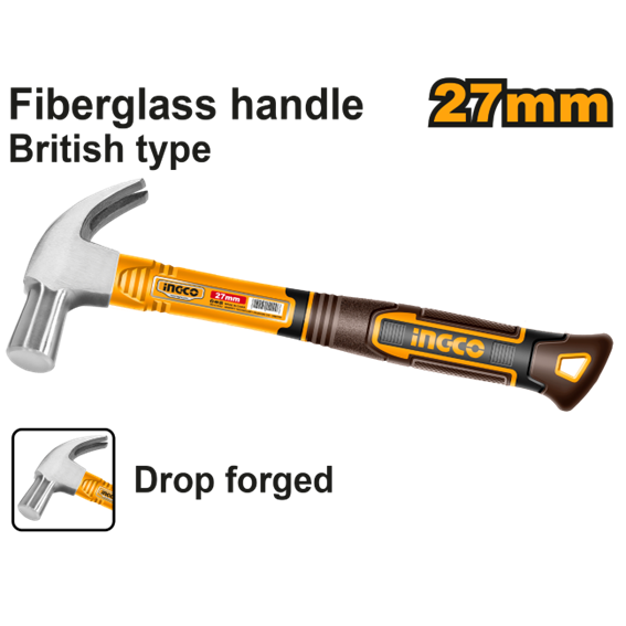 MARTELO COM CABEÇA EM AÇO POLIDO CABO DE FIBRA 27MM INGCO HCH81027